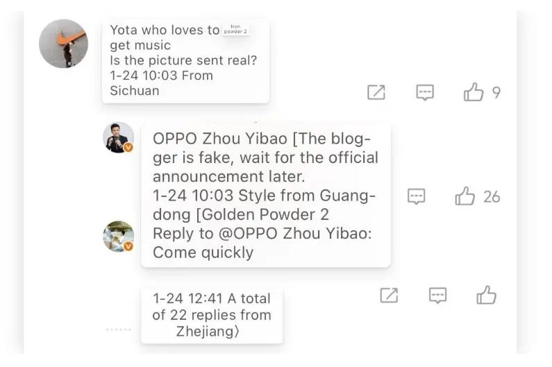 OPPO’s product manager, Zhou Yibo, responded strongly on Weibo, saying: “The blogger is fake. Please wait for the official announcement.” This statement suggests that the leaked renders are either incorrect or contain misleading details.